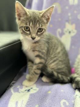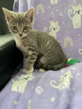 Ellie is a sweet 3 month old gray tabby girl. Cutie pie, sweetheart whom, must be adopted with another kitten/sibling...