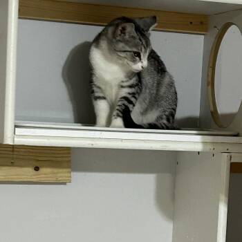 Meet Sir Lynxalot, a charming gray male tabby with white accents, who is around 5.5 months old. His coat features...