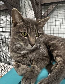 Meet Gregory, a stunning grey tabby fella with gold eyes who is not only sweet but very loving as well....