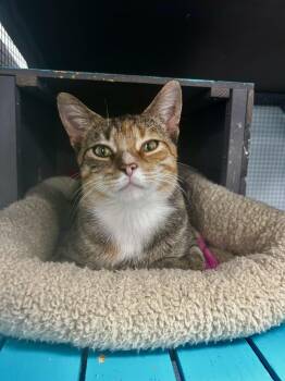 Meet Vivian, a striking golden torbie girl. Vivian is demure and always knows her manners. She loves pets and attention....