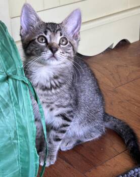 Millie is being fostered with her male sibling Couch (also listed, he's a longhaired fluffy tabby!) They are super sweet...