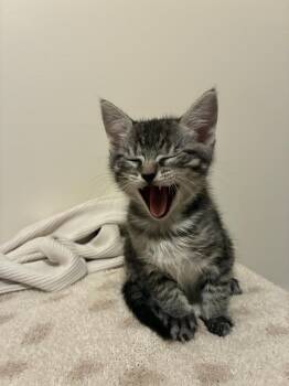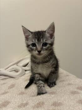 This precious 4-week-old grey tabby girl is as soft and sweet as she looks! With her beautiful medium-length fur and...