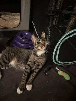 Mittens is a little over one year old, full of personality and has already mastered the art of stealing hearts....