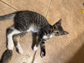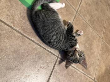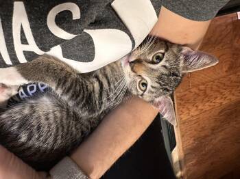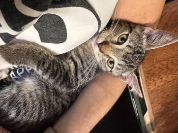 Derecho is a 3 month old gray and white tabby. He is a love bug. He likes to lay on...
