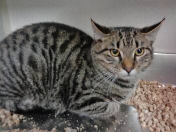 EUGENE is a handsome black and brownish gray tiger who is about 6 months old. When his photographs were taken,...