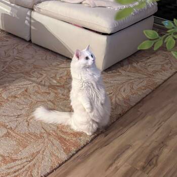 The Turkish Angora is a striking breed known for its silky, medium to long fur and elegant, slim build. Originating in Turkey, they are characterized by their affectionate and playful nature, forming strong bonds with their human companions. Renowned for their intelligence and agility, Turkish Angoras have a reputation for being skilled climbers and jumpers. Their almond shaped eyes and long, bushy tail add to their majestic appearance. With their sociable and loving demeanor, Turkish Angoras make wonderful companions for families and individuals alike.