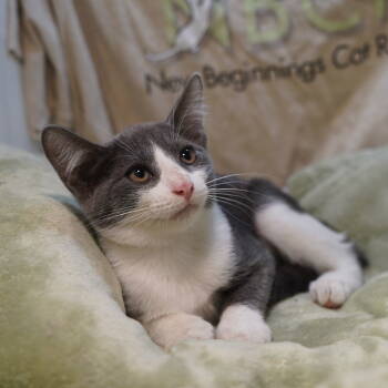 Lucy is a precious DSH blue and white tuxedo female born approximately 6/19/2025.