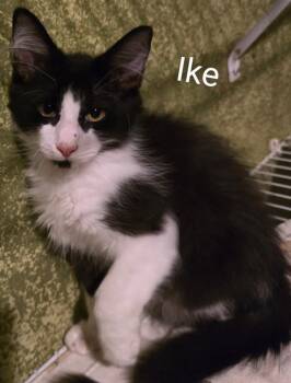 IKE is a 3 month old male Tuxedo. He is super outgoing and playful. He is at our Adoption Center....