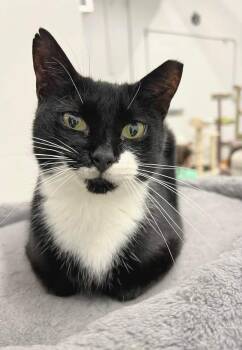 Meet Princess Leia a stunning young tuxedo cat with a heart full of love to give.