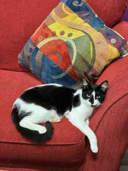 This sweet and petite tuxedo girl came to our shelter with 5 tuxedo babies! She was...