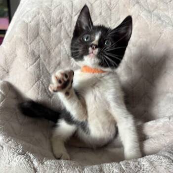 Orion is 8 weeks old and a total sweetheart wrapped in a tiny tuxedo. With his adorable kinked tail and...