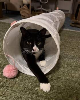 This adorable young guy is a classic tuxedo -- sweet, smart, curious, affectionate and playful. He was pushed out the...