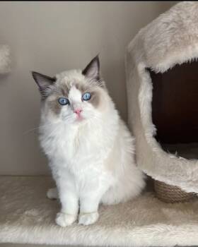 Meet James — a stunning male Ragdoll kitten with a calm, loving personality and beautiful blue eyes that will melt your heart. He has a soft, silky coat and that classic Ragdoll charm—gentle, affectionate, and incredibly friendly.