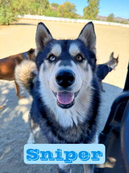 Meet incredible Sniper, this irresistible handsome malamute/husky boy, who is approximately 18 months old, 65 pounds of pure joy! He...