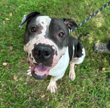 Dudley is a 4-6 year old American Bulldog/Staffordshire Terrier mix who weighs about 64 lbs, and every ounce of him...