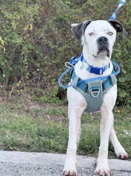 This 1-year-old American Bulldog is as handsome as they come.. just look at those stunning blue eyes!!...