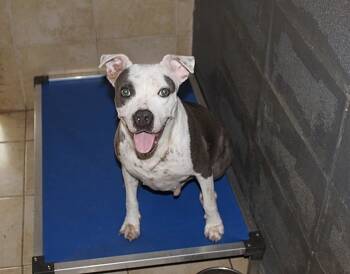 Mollie's skin is scarred from when she first came in with mange, no fur, and sunburn. The scars do not...