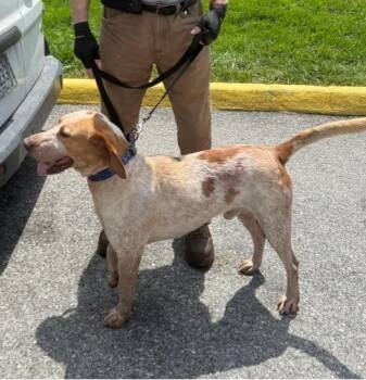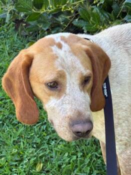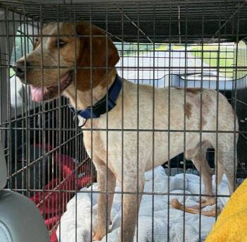 Rusty came to us from rural North Carolina where he was found stray. He's a nice hound who makes friends...
