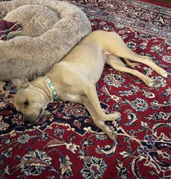 Twinkie is about 2-3 years old and weighs 30-35lbs. She loves to cuddle, play and is very smart and sweet....