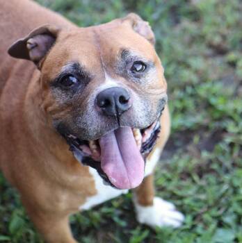 The American Staffordshire Terrier, also known as the Amstaff, is a medium sized, muscular breed known for its loyalty and courage. Developed in the United States, they are intelligent and affectionate dogs, making them great family companions. With a distinctive short coat and strong build, American Staffordshire Terriers are often misunderstood due to their past as fighting dogs, but they are actually loving and playful pets when raised in a nurturing environment. They thrive on human interaction and are eager to please their owners.