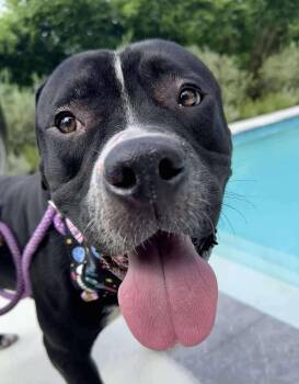 This 2 year old (approx) Staffordshire Terrier mix is 70lbs of pure love, loyalty, and well a whole...