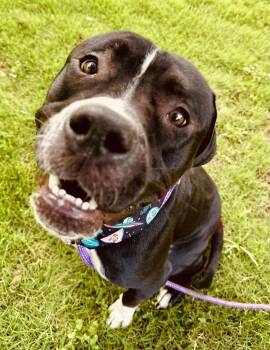 This 2 year old (approx) Staffordshire Terrier mix is 70lbs of pure love, loyalty, and well a whole...