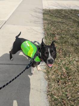 Meet Panda! This sweet short-rider is a 3 year old pit bull mix looking for a warm lap and a...