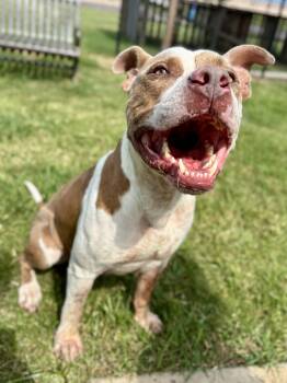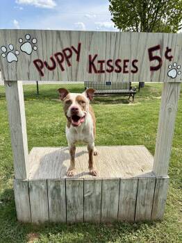 Meet Roscoe, the tongueless pittie known for his "ghost kisses"!