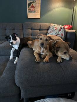 A 16-week-old Staffordshire Terrier mix with a heart full...