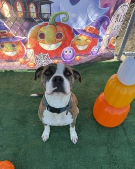 Primary Color: Brindle Secondary Color: White Weight: 0lbs Age: 4yrs 3mths 1wks Animal has been Spayed
