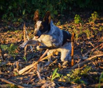 The Australian Cattle Dog, also known as the Blue Heeler, is a hardworking and intelligent breed originally developed in Australia for herding cattle. Renowned for their endurance and agility, these medium sized dogs have a striking blue or red speckled coat and alert, curious expression. With a strong herding instinct and boundless energy, they require mental stimulation and physical activity to thrive. Blue Heelers are loyal, protective, and make excellent companions for active individuals or families willing to provide the engagement and exercise they need.