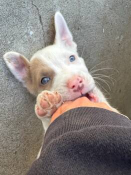 Meet Rookie! One of our adorable baseball litter pups, born in October. This likely Pitbull/Australian Shepherd mix has two stunning...