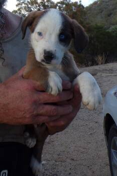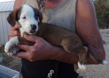 The Aussie mix pups are 8 weeks old and born to an Australian Shepherd mix mother but we don't know...