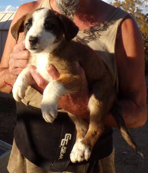 The Aussie mix pups are 8 weeks old and born to an Australian Shepherd mix mother but we don't know...