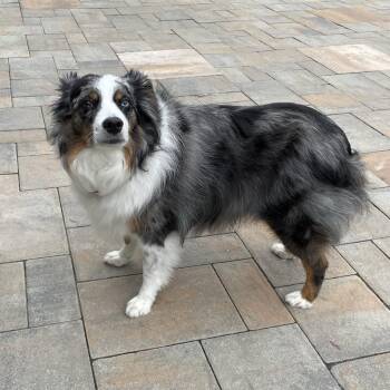 The Australian Shepherd is a highly intelligent and energetic herding dog known for its loyalty and work ethic. Originating in the United States, despite its name, this breed is prized for its agility, trainability, and versatility in various dog sports and activities. Australian Shepherds have a distinctive medium length coat that comes in different colors, often with unique merle patterns. With proper training, socialization, and exercise, these dogs make excellent companions for active families and individuals seeking a devoted and playful four legged friend.