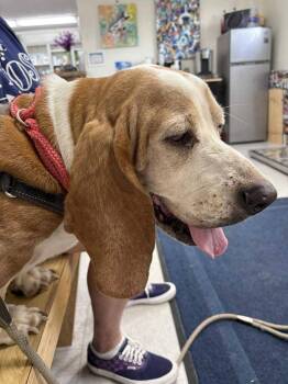 This is Banjo. He’s a 7 year old lemon & white basset hound who spent his life with one family,...