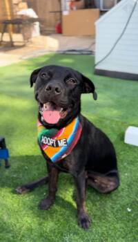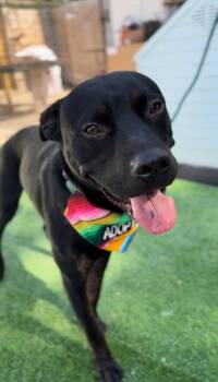 Big Red is a handsome and sleek 50 lb., Black Lab mix and his estimated DOB is 5/5/24.