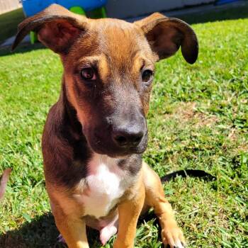 Larry is a Black Mouth Cur/Hound-mix pup with soulful eyes and a calm, thoughtful energy. At ~3-4 months old and...