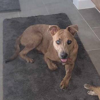 Meet Rocky, a charming 2-year-old Black Mouth Cur/Whippet mix with a heart full of love. Weighing in at under 40...