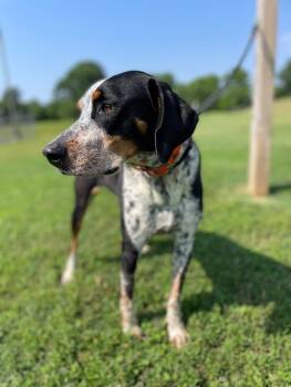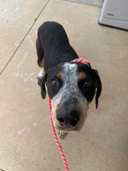 Sophie is a 54 lb, approximately two year old blue tick coonhound. She is medium energy and very sweet. Seems...