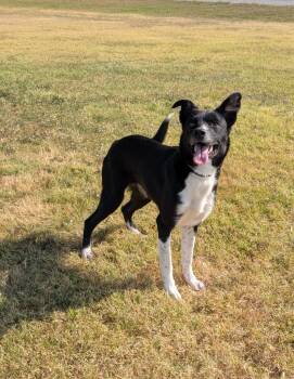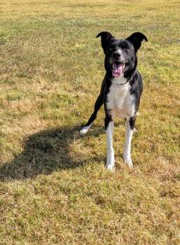 White Socks is a pretty little 38 lb Border Collie/Cattledog mix who's as happy as they come...