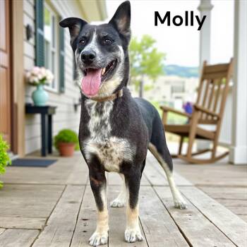 Molly is a 5-year-old, 65-pound Border Collie and German Shepherd mix.