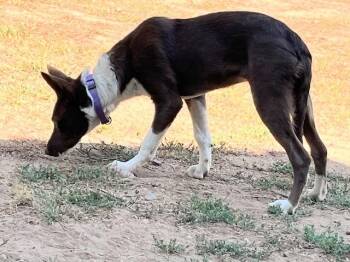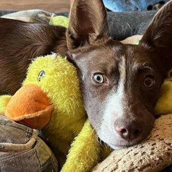 Meg is a petite 24 lb, red and white, smooth-coat girl looking for adventures. She is about 7 months old...