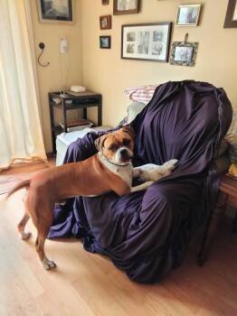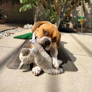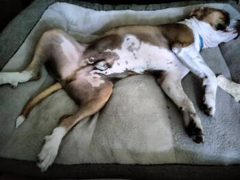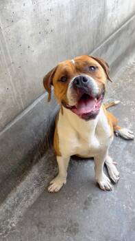 This hunky boy is a 65lb boxer mix who is the chillest boy...