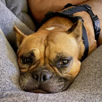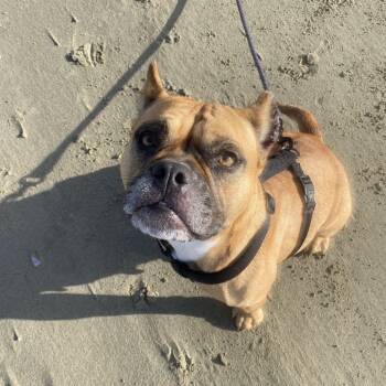 I'm an 8-year-old Boxer/English Bulldog mix, about 40 pounds of calm, steady love. I adore people-especially kids!...