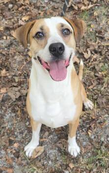 Meet Toby, a 1 year old, 51 pound, wonderful Boxer/Lab mix. He is friendly and gets along with other dogs...