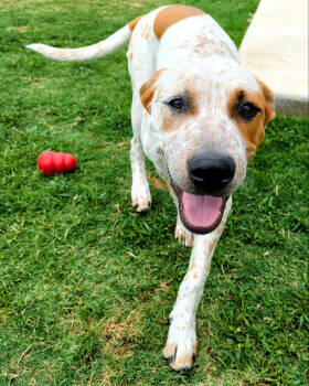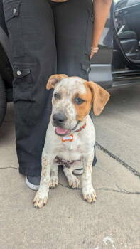 Meet this playful pup, Sheldon Duke. He is 5 months, weighing 29 lbs., boxer mix with a smooth white coat,...