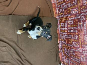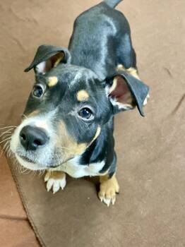 Male boxer mix that currently weighs 10.8 lbs. He is a little investigator and goes on sniffing...