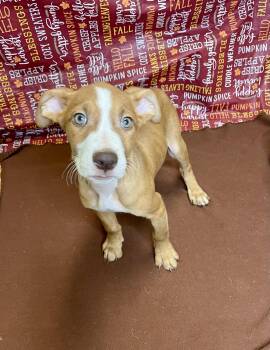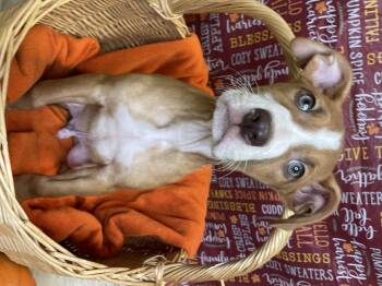 is a 11.6 pound, boxer mix puppy. So many cuddles from this little guy.