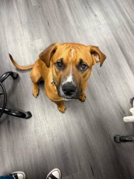 Meet Paxton! a sweet 10 month old Boxer Pit mix and is dog friendly! Paxton is visually impaired but that...